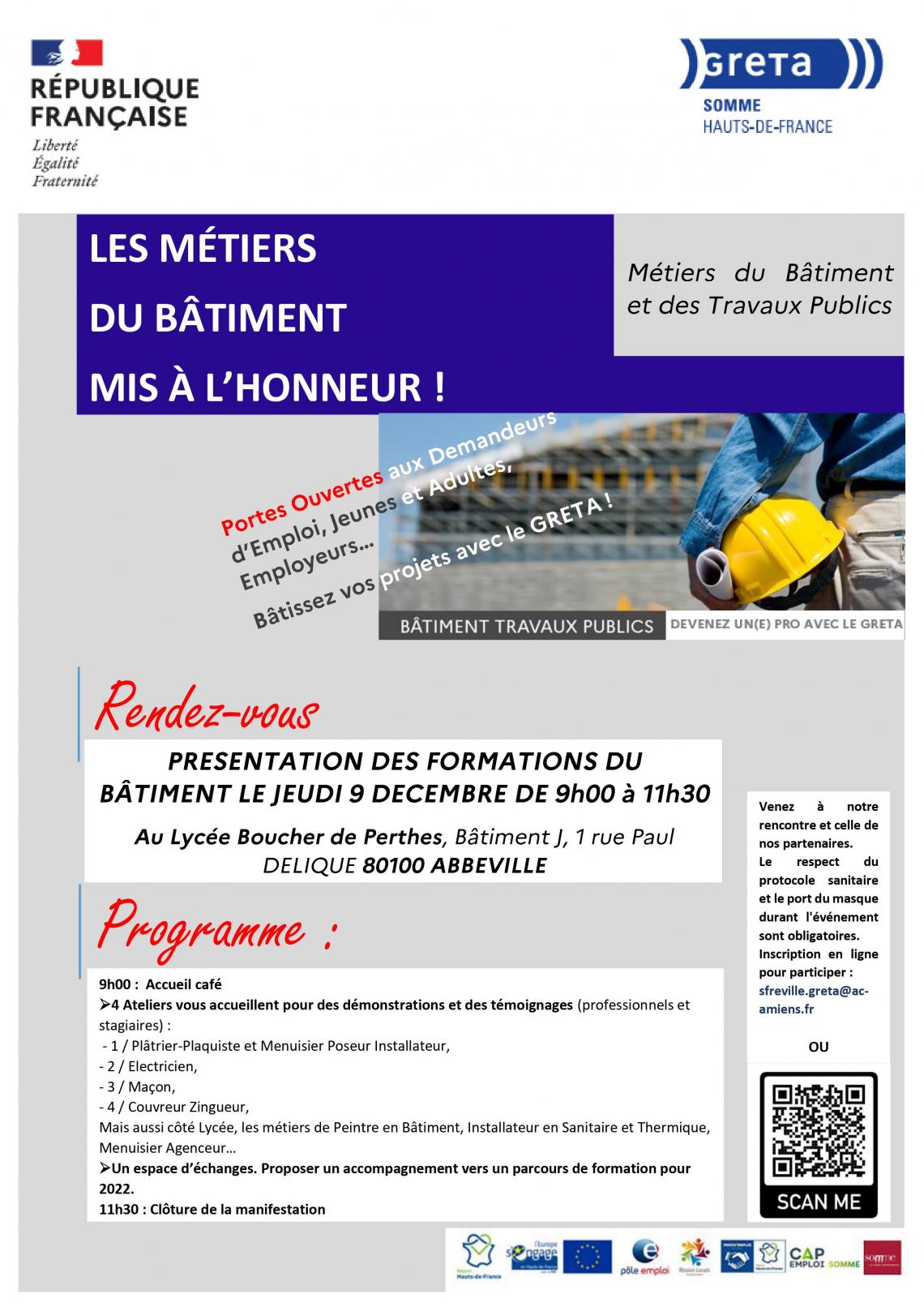 2021-11-22 14:00:00 INVITATION GRETA : LES FORMATIONS DU BÂTIMENT MISES A L'HONNEUR LE JEUDI 9 DECEMBRE AU LYCEE BOUCHER DE PERTHES - ABBEVILLE