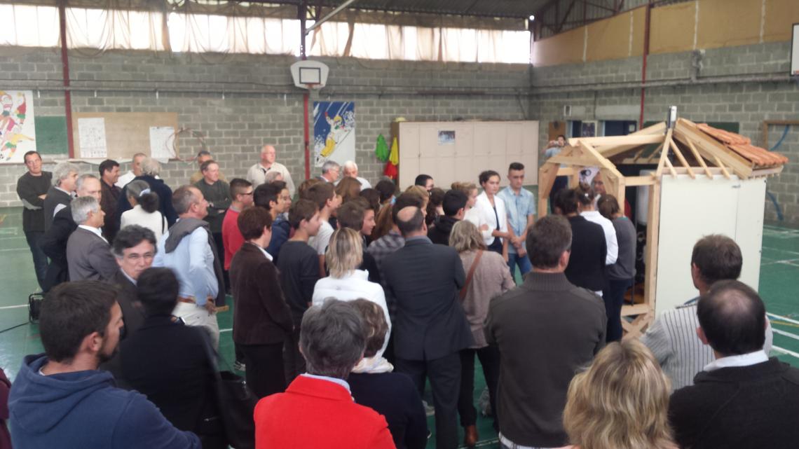 Avec de vrais matériaux et équipés de toute une panoplie d’outils, les scolaires participent à l’édification, assemblent une charpente, posent des ardoises, montent un escalier, installent un réseau électrique, …