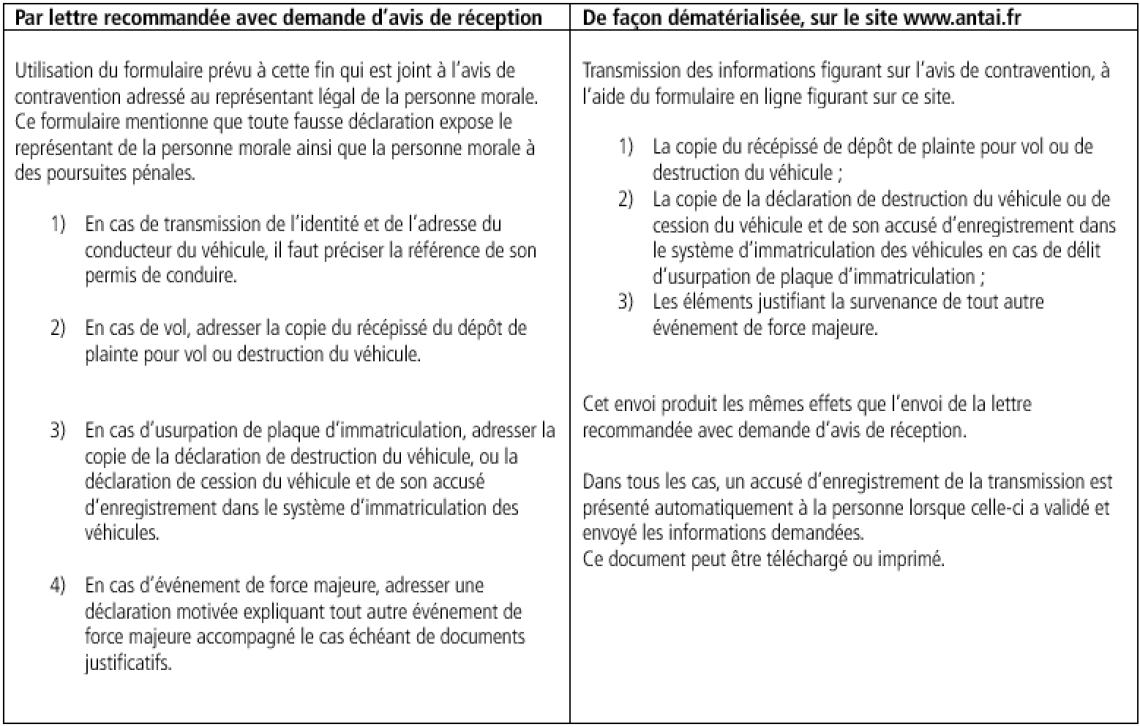 - Soit l’identité et l’adresse de la personne physique qui conduisait le véhicule ;