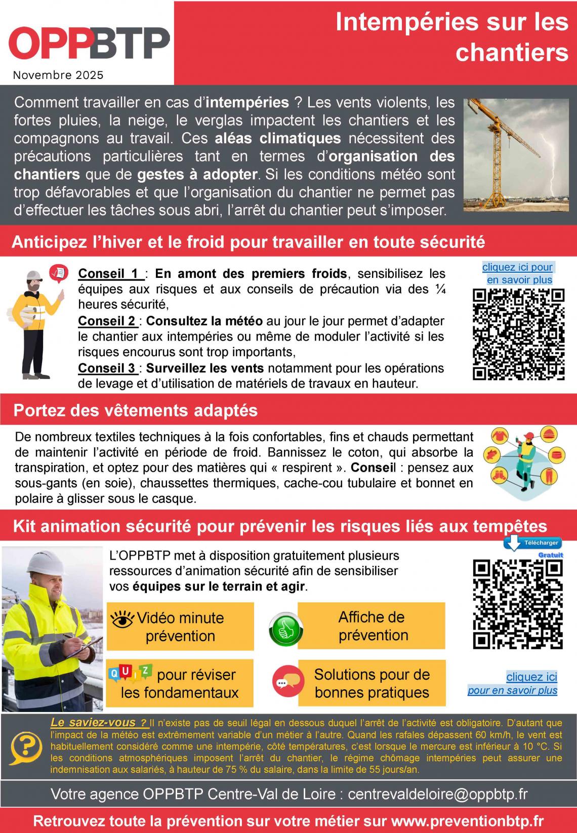 Notre partenaire l'OPPBTP vous propose aujourd'hui un zoom sur le thème des "intempéries sur les chantiers" pour vous aider à appréhender au mieux les risques liés à ces conditions météorologiques.