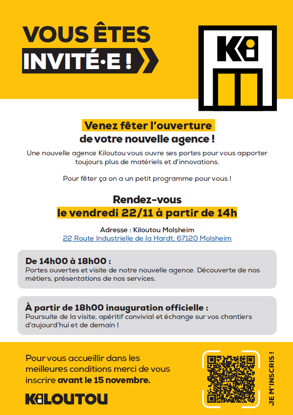 Invitation KILOUTOU : Inauguration de l'agence de Molsheim le vendredi 22 novembre 2024 à partir de 14h