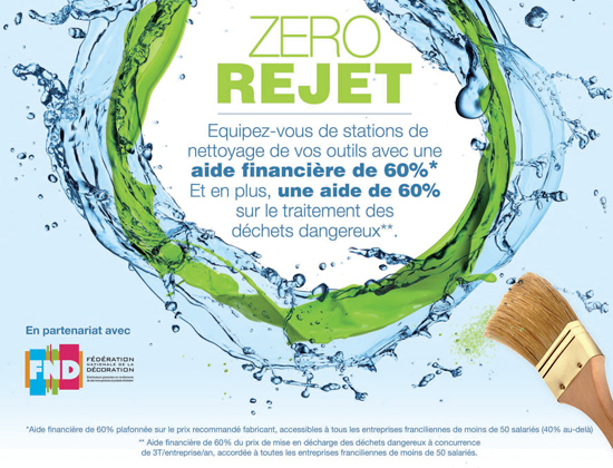L’opération « Zéro Rejet » permet en effet aux entreprises de bénéficier d’une aide financière de l’Agence de l’Eau Seine Normandie, pour l’achat de stations de nettoyage des outils de peinture (taux de subvention de 60% pour les entreprises allant jusqu’à 50 salariés ! )