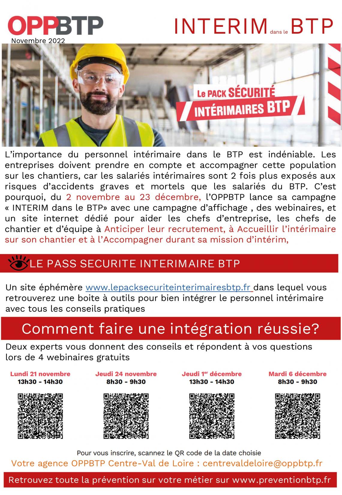 2022-11-24 20:33:01 L’OPPBTP lance sa campagne « INTERIM dans le BTP» Site : www.lepacksecuriteinterimairesbtp.fr