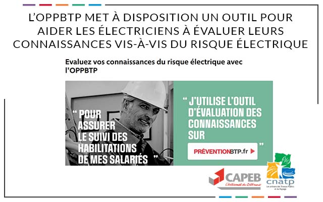 L’OPPBTP met à disposition un outil pour aider les électriciens à évaluer leurs connaissances vis-à-vis du risque électrique
