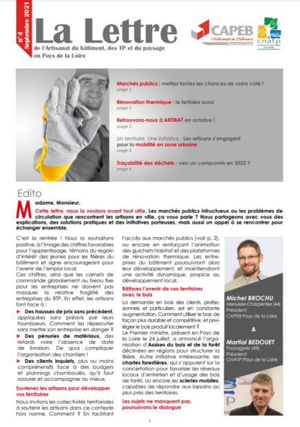 Vos collègues artisans, engagés comme "Ambassadeurs CAPEB sur les territoires", ont à cœur d'agir au plus près de vos préoccupations et de votre territoire. Et les sujets ne manquent pas. C'est pourquoi ils viennent de diffuser la 5e lettre aux élus locaux, maires et présidents de communautés de communes notamment.