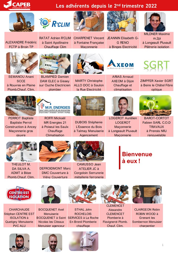 Depuis le 2nd trimestre, voici nos nouveaux adhérents :