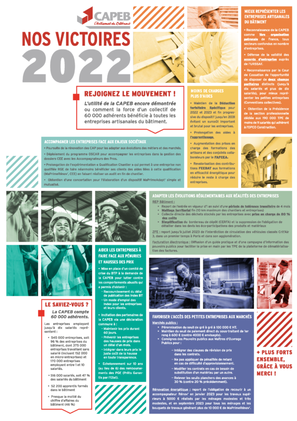 La CAPEB a agi et a obtenu des avancées ! Nos victoires en 2022 !