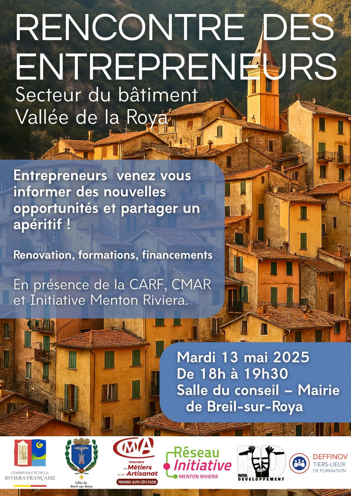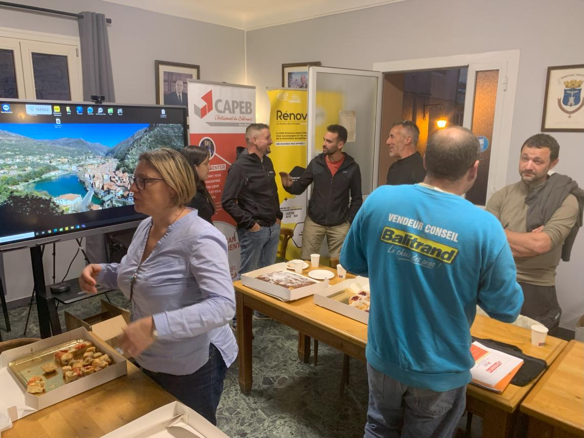 La CAPEB était présente mardi 13 mai à Breil-sur-Roya, aux côtés de la CMAR, de la CARF pour une réunion d'information des plus intenses. Un plaisir que de rencontrer de fidèles adhérents, de futurs adhérents et des représentants de structures motivées à contribuer au développement des artisans du Bâtiment dans la vallée de la Roya.