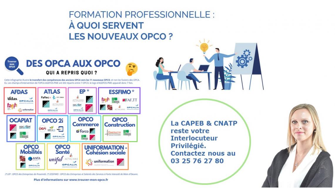 Depuis le 1er avril 2019, les onze OPCO (OPérateurs de COmpétences nationaux) remplacent les 20 OPCA (Organismes Paritaires Collecteurs Agréés) qui existaient.