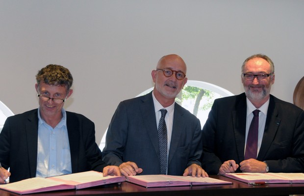 Patrick Liébus, Président de la Confédération de l’Artisanat et des Petites Entreprises du Bâtiment, Gilles Chatras, Administrateur d’IRIS-ST et Stephan Campion, Directeur général du Groupe TOLLENS officialisent le 26 juin 2012 la collaboration entre la CAPEB, le Groupe TOLLENS et IRIS-ST par la signature d’un accord de partenariat de trois ans, en prolongement d’une collaboration antérieure réussie.