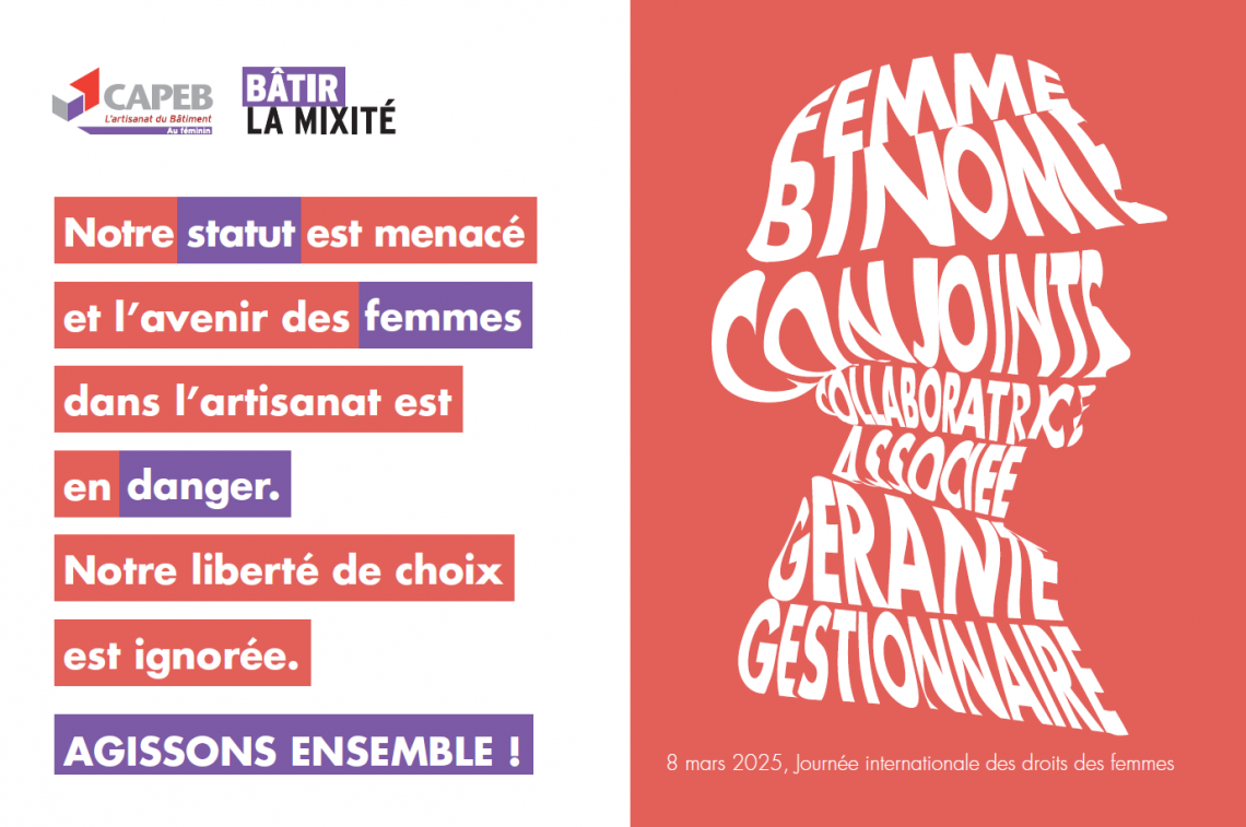 Car en effet, opter pour ce statut relève d’un choix délibéré, souvent fait d’un commun accord au sein du couple qui gère ensemble une entreprise artisanale du bâtiment. Supprimer ce statut est donc une manière de nier cette capacité de choix, et en tout état de cause, de méjuger qu’il puisse être adapté à un modèle d’entreprise ! Et pourtant, le statut de conjoint collaborateur est un statut protecteur pour celui/celle qui l’adopte, lui permettant de sortir de l’anonymat et du travail dissimulé, de se constituer des droits propres, et de siéger dans des instances de gouvernance où les intérêts des hommes et des femmes de l’artisanat du bâtiment sont en jeu.