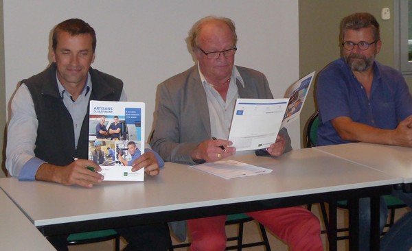 De gauche à Droite : Denis CALIPEL (Président Fédération Manche GROUPAMA), Daniel LECHAPELAIN (Président CAPEB Manche) et Benoît DUBOSCQ (2e Vice Président CAPEB Manche) à Coutances le 05 septembre dernier.
