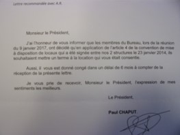 Nous avons pris acte de cette décision mais nous attendons un retour de courrier nous indiquant le motif.