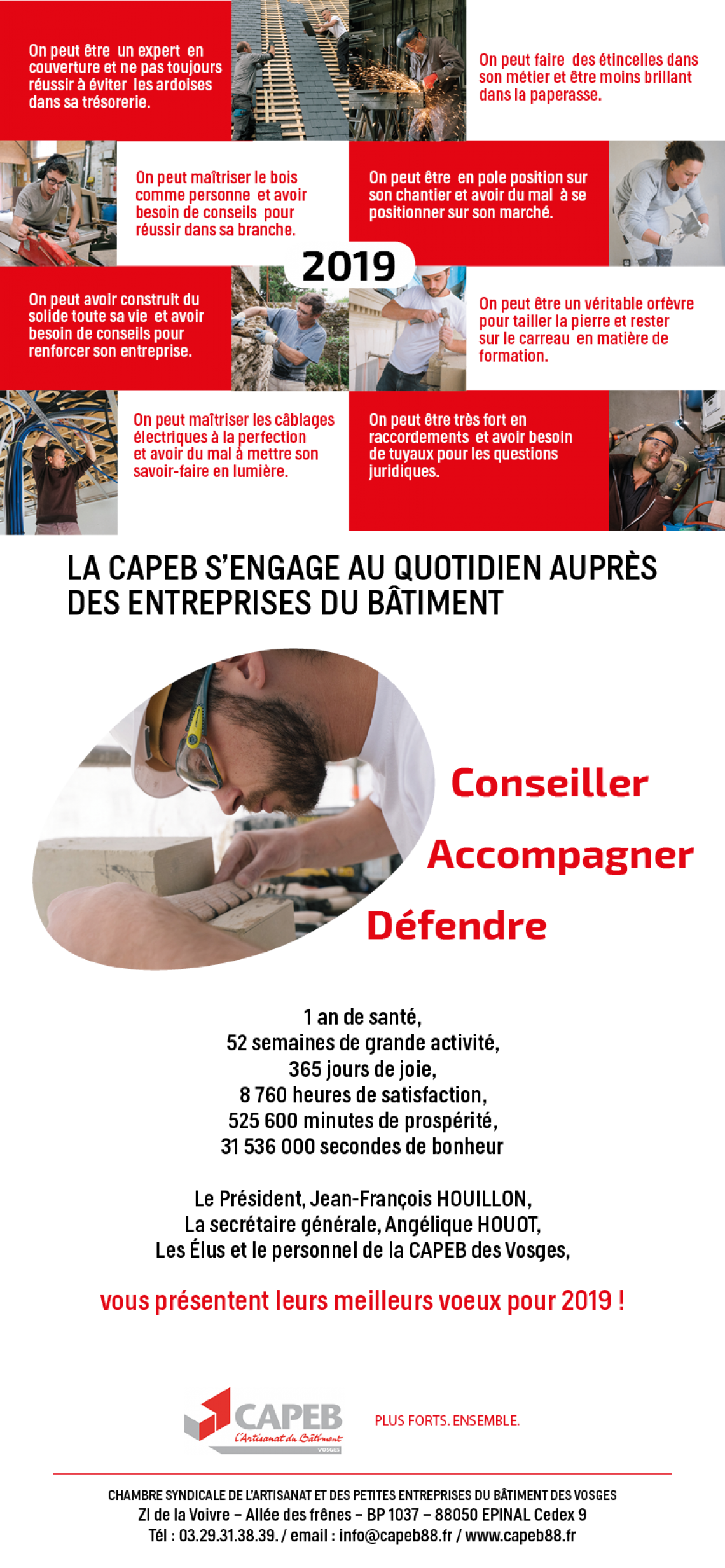 La CAPEB Vosges vous souhaite une excellente année 2019 !