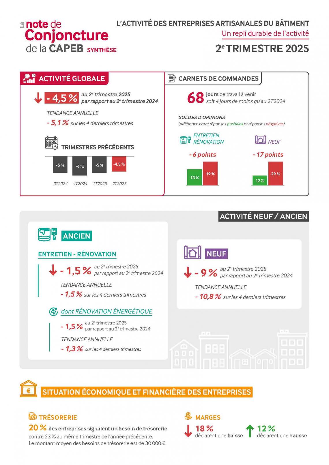 2025-09-08 10:42:24 La note de conjoncture : L’ACTIVITÉ DES ENTREPRISES ARTISANALES DU BÂTIMENT Un repli durable de l’activité - 2e TRIMESTRE 2025 Note de conjoncture 2e TRIMESTRE 2025 ici.