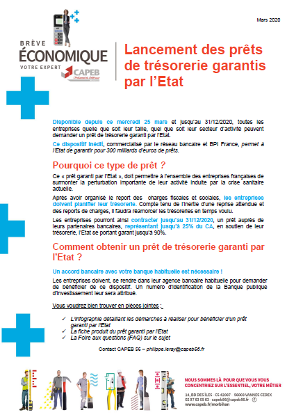 Disponible depuis ce mercredi 25 mars et jusqu’au 31/12/2020, toutes les entreprises quelle que soit leur taille, quel que soit leur secteur d’activité peuvent demander un prêt de trésorerie garanti par l’Etat.