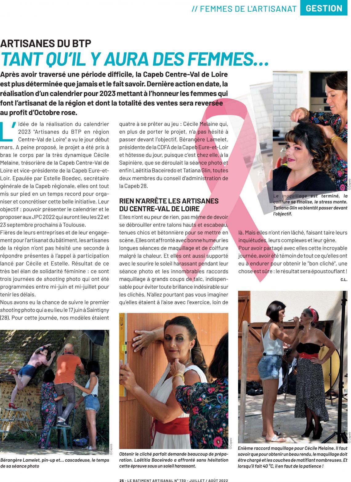 13 femmes exerçant des métiers et venant des 6 départements du Centre Val de Loire ont joué le jeu en participant aux 3 shootings organisés entre le 17 juin et le 7 juillet 2022.
