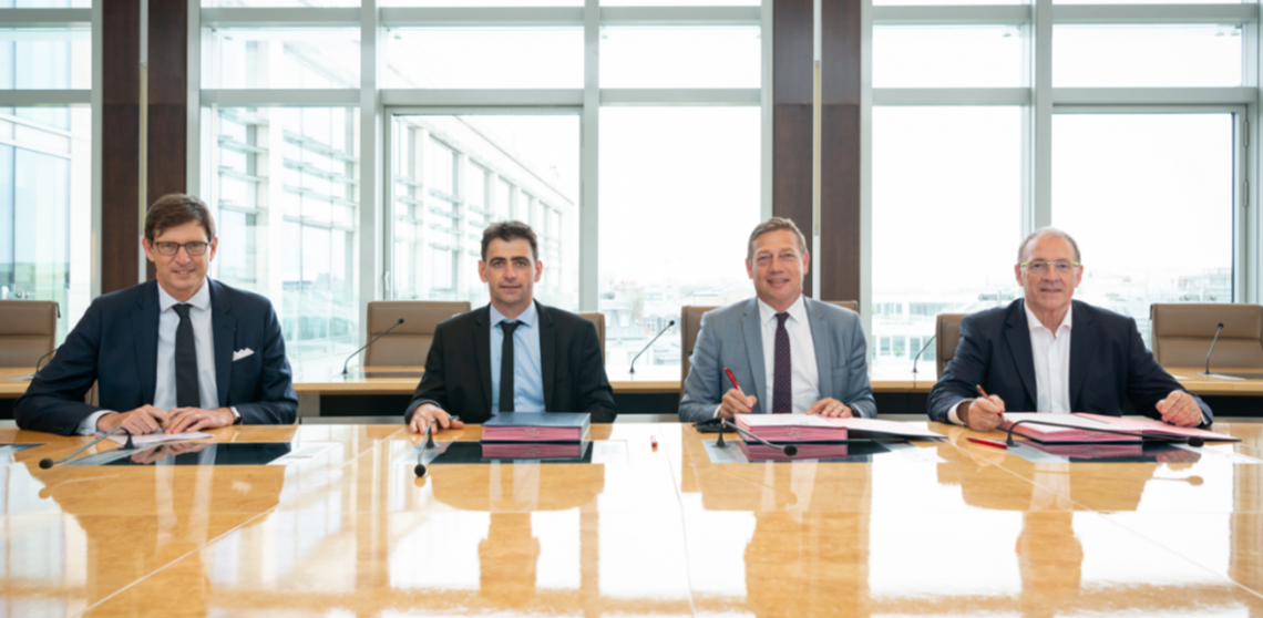 Thierry Martel, Directeur Général du Groupe Groupama, Jean-Yves Dagès, Président du Groupe Groupama représenté par Jérôme MOY, Président de la Commission Pro Groupama, Jean-Christophe Repon, Président de la CAPEB via sa filiale BÉRANGER DÉVELOPPEMENT et David Morales, Trésorier de l’IRIS-ST signent ce jour une collaboration de 3 ans renouvelables.