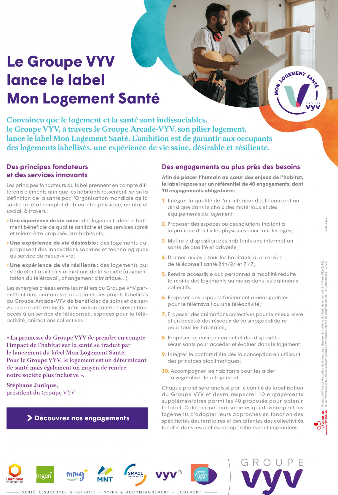 Convaincu que le logement et la santé sont indissociables, le Groupe VYV, à travers le Groupe Arcade-VYV, son pilier logement,