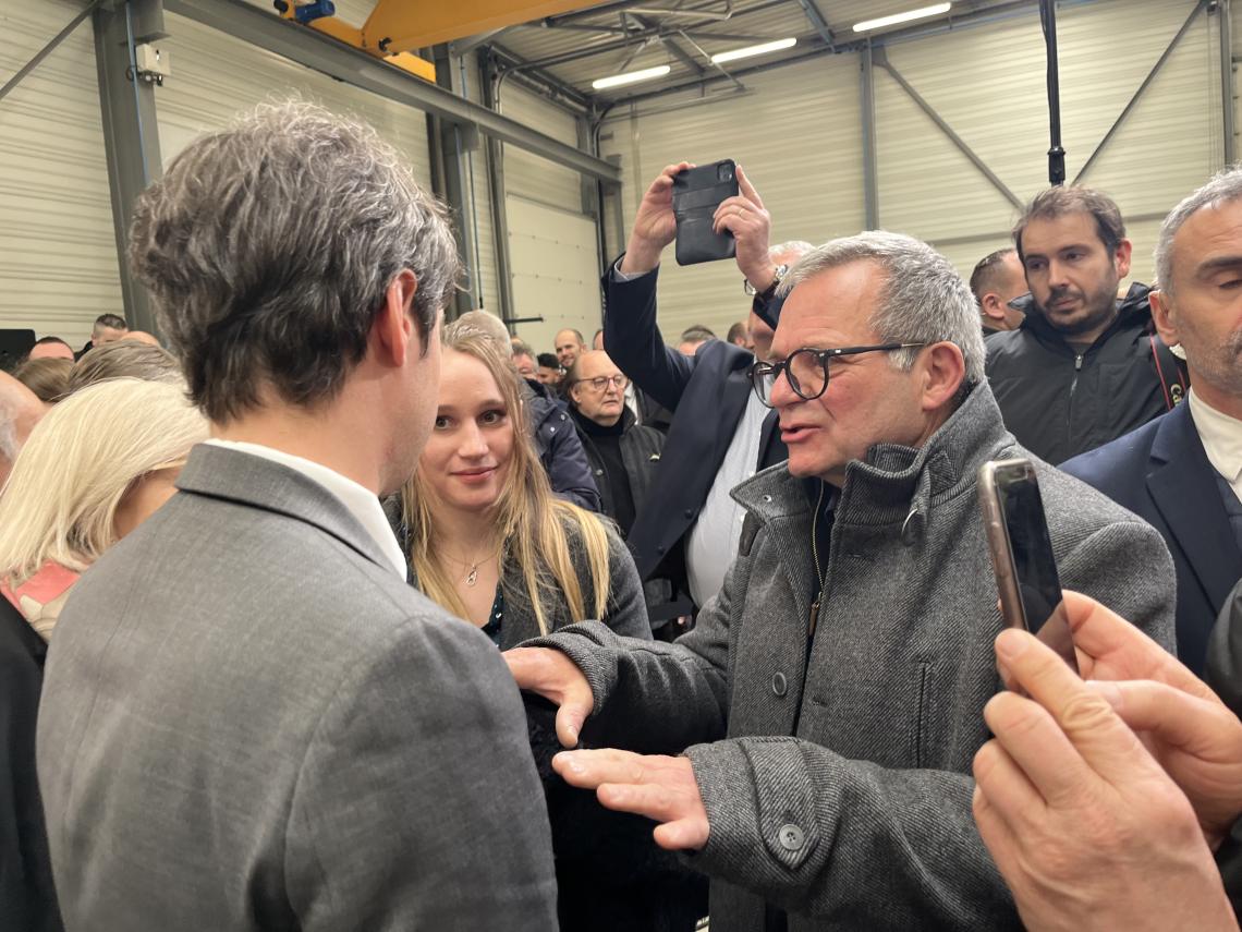 Invité à assister à son discours à l’entreprise Numalliance à Saint-Michel sur Meurthe, le président de la CAPEB des Vosges, Patrick Mathieu, a pu l'interpeller pour évoquer le sujet sensible de MaPrimRenov. En effet, reconnu rapidement parmi la foule grâce à son badge CAPEB, Patrick Mathieu a pu entendre un « Ah la CAPEB ! » enjoué de la part du premier ministre, preuve de la reconnaissance de notre organisation professionnelle. Notre président lui a demandé de simplifier d'urgence le dispositif MaPrimRenov, il promet de s’occuper du sujet.