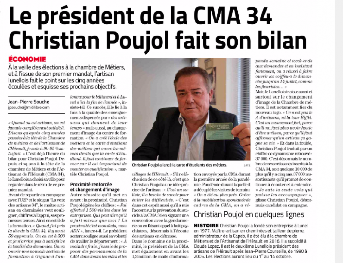 Le président de la CMA34 fait son bilan