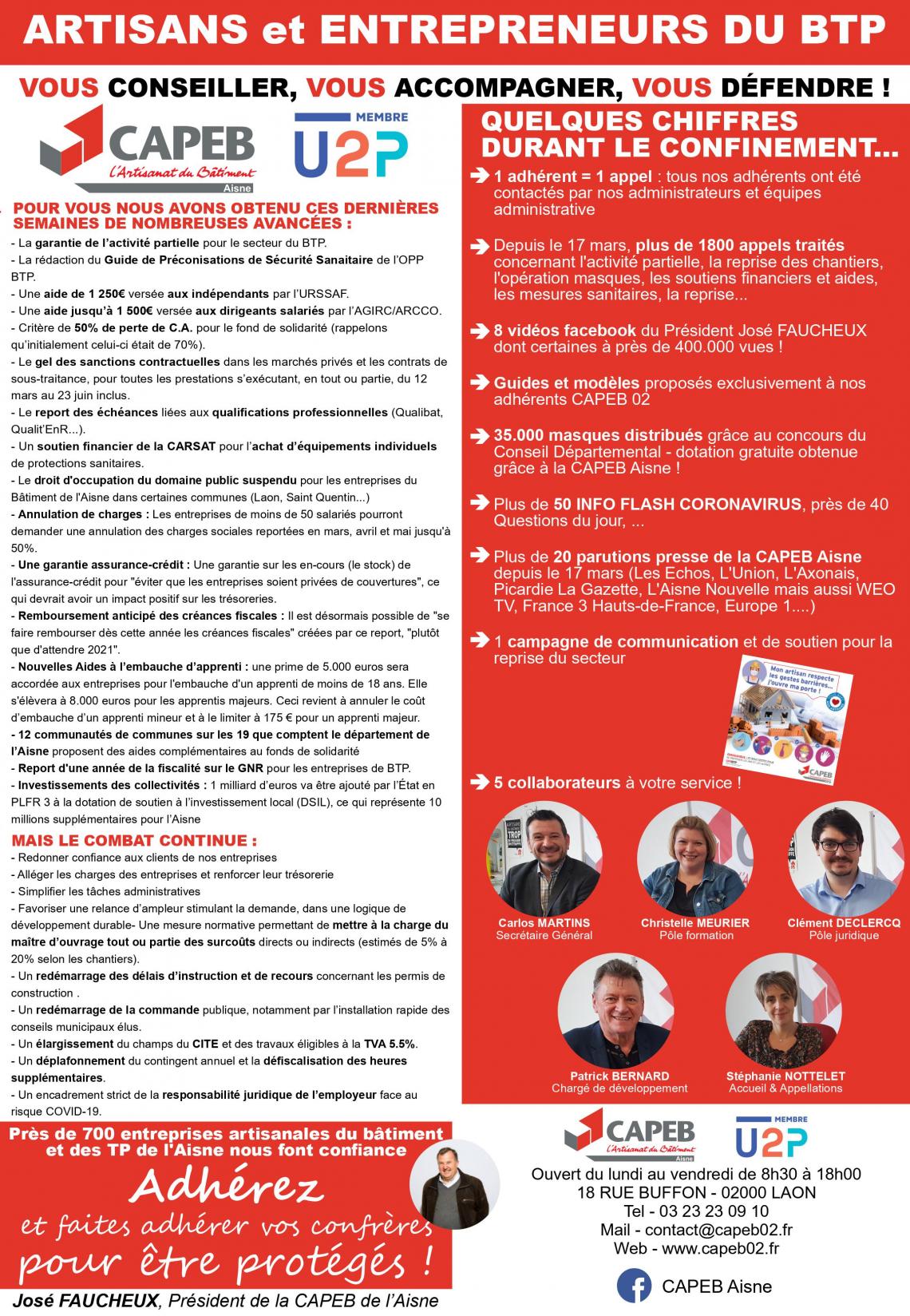 Votre CAPEB départementale vous a accompagné, défendu et conseillé durant les semaines du confinement et depuis le déconfinement.