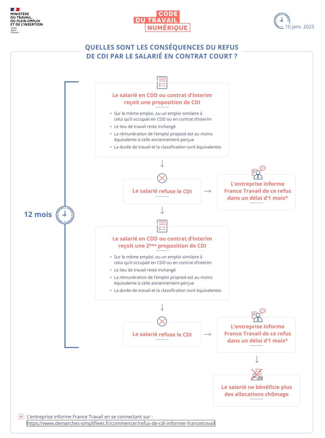 - Celle d’informer France Travail si le salarié refuse la proposition de CDI.