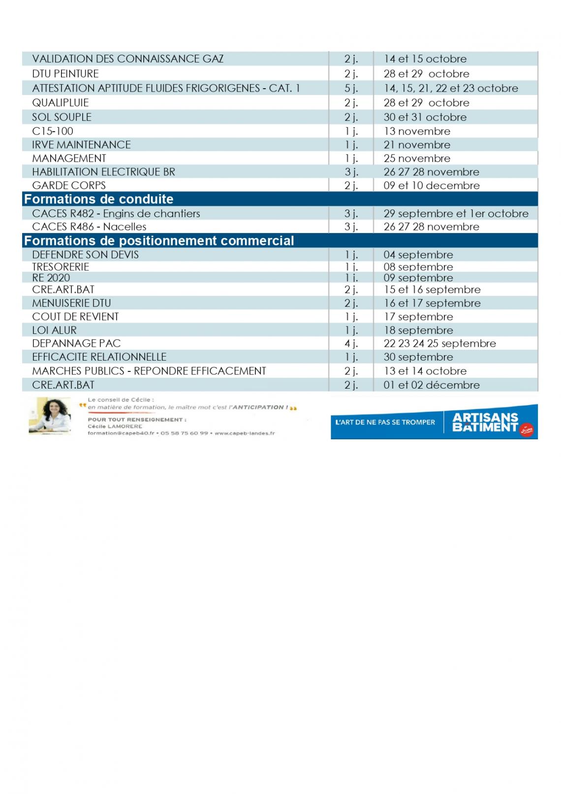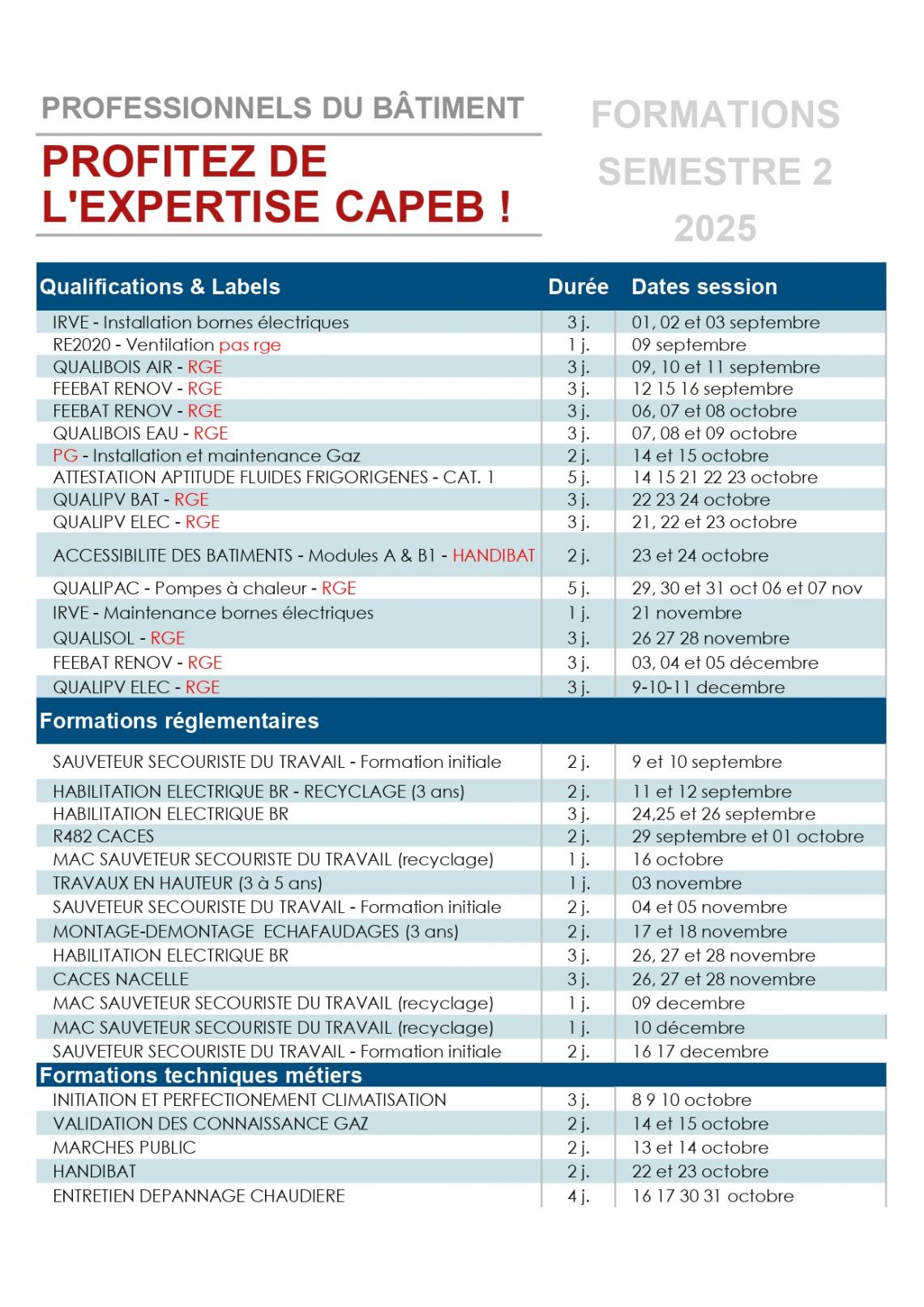 La CAPEB Landes vous propose une programmation riche et variée pour monter en compétences, anticiper les évolutions de votre métier et répondre aux obligations réglementaires.