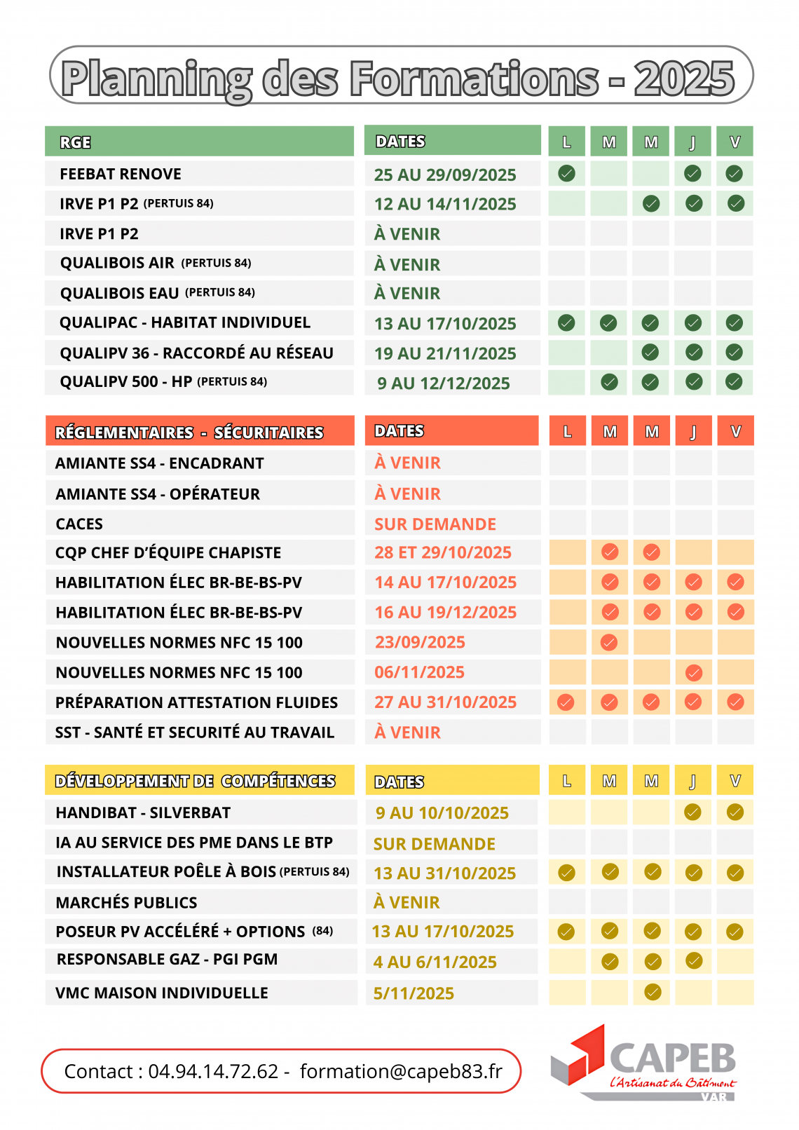 Infos & inscriptions auprès de Christine ta conseillère formation : 04 94 14 72 62 - formation@capeb83.fr