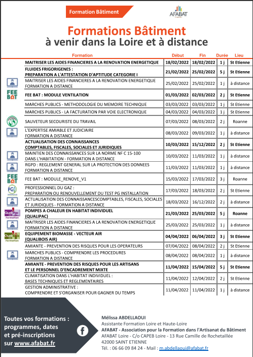 Les formations proposées par notre partenaire AFABAT à la CAPEB Loire
