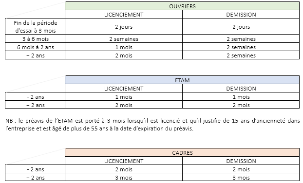 - Article 8.1 de la convention collective des ETAM (IDCC 2609) sur la durée des préavis ;