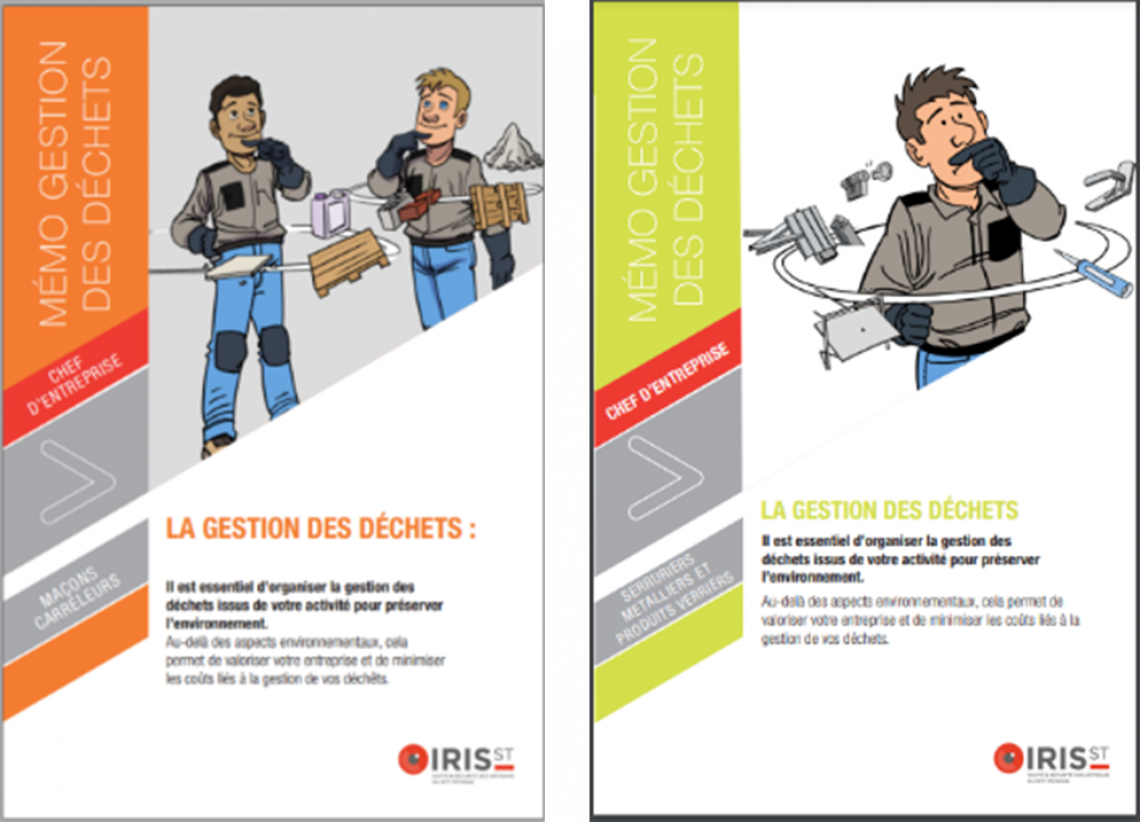 Ces deux documents sont à l’attention des chefs d’entreprise, serruriers métalliers vitriers d’une part, et maçons carreleurs d’autre part. Le but est d’expliquer l’intérêt de gérer ses déchets tout en proposant des solutions existantes en relation avec ces professions. Vous aurez des conseils sur l’optimisation de la gestion de vos déchets ainsi que sur lesmoyens de sensibiliser vos salariés à celle-ci. Plusieurs bonnes pratiques sont évoquées pour vous aider à les mettre en place lors des achats, dans l’atelier et sur chantier. Ces mémos sont aussi consultables sur l’application smartphone « IRIS-ST les mémos ».