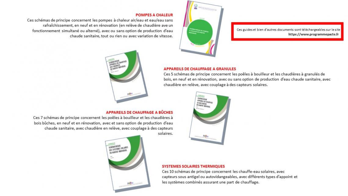 Le programme PACTE à publié plusieurs schémathèques qui ont pour vocation d’être un outil pratique et pédagogique, en vue de sélectionner et de concevoir des installations de production d’eau chaude sanitaire et/ou de chauffage en habitat individuel.
