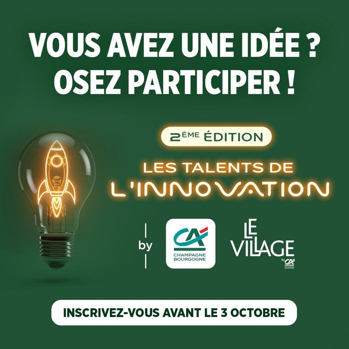 Le Crédit Agricole de Champagne-Bourgogne et Le Village by CA Champagne Bourgogne présentent la 2ème édition des Talents de l’Innovation.