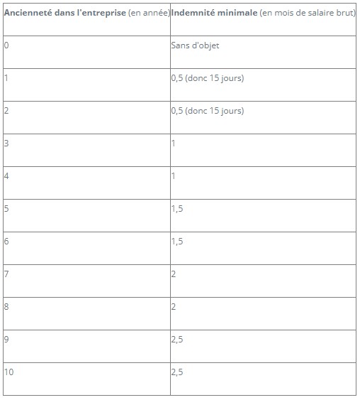 A savoir que le montant de l’indemnité dépend de l’ancienneté du salarié et du nombre de salariés dans l’entreprise.