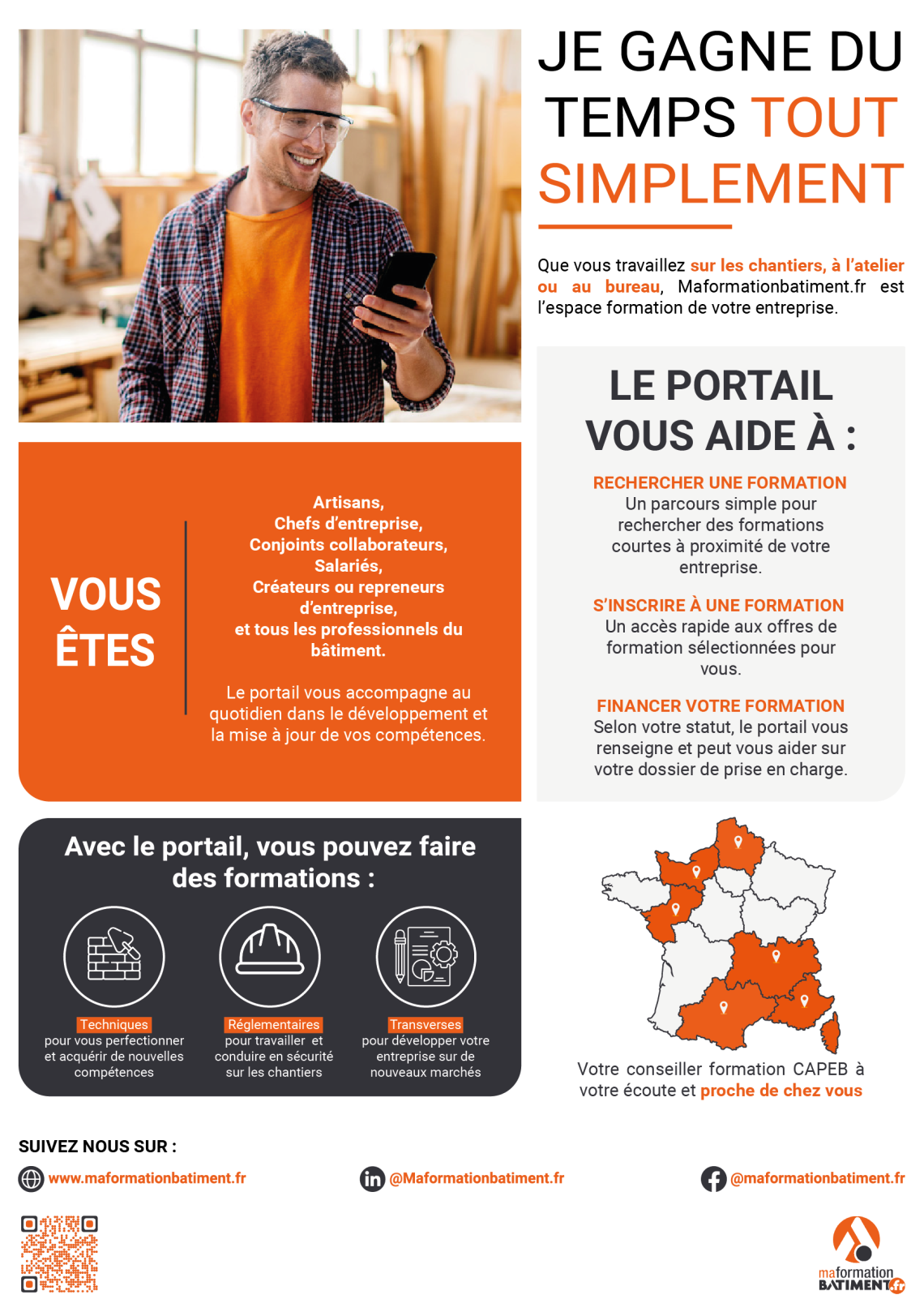 Retrouvez toutes nos formations et inscrivez-vous en ligne sur le portail MAFORMATIONBATIMENT : https://maformationbatiment.fr/