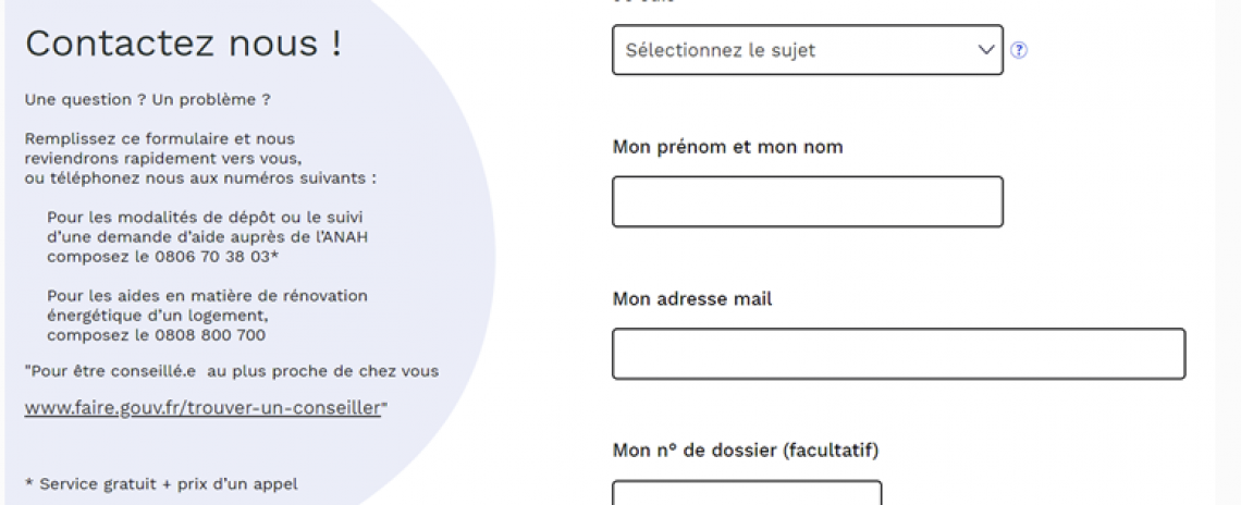 Le numéro 0806 70 38 03 permet de joindre directement les services de l’Anah et de demander une assistance concernant le suivi des dossiers.