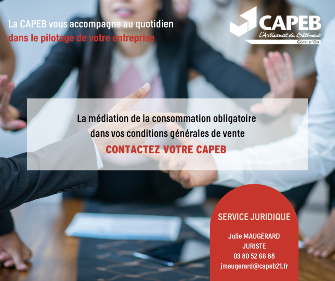Chaque entreprise est libre du choix de son médiateur. Au niveau national, la CAPEB a signé un partenariat avec la société CM2C. Si vous souhaitez travailler avec cette société, vous pouvez les contacter par internet sur cm2c.net ou par voie postale : Centre de la Médiation de la Consommation des Conciliateurs de Justice, 14 rue saint Jean, 75017 Paris.