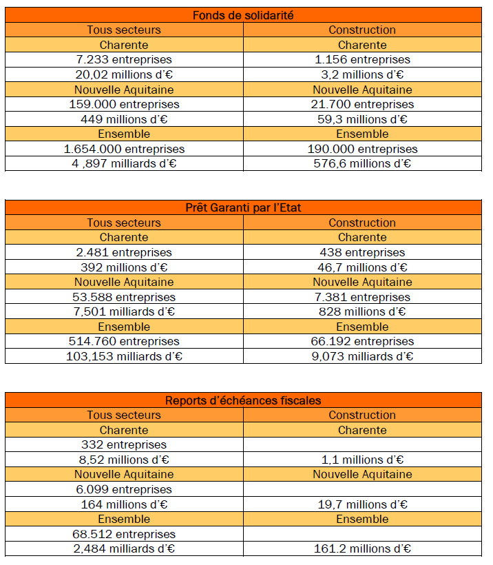 Mesures de soutien et entreprises, quels montants délivrés en Charente?