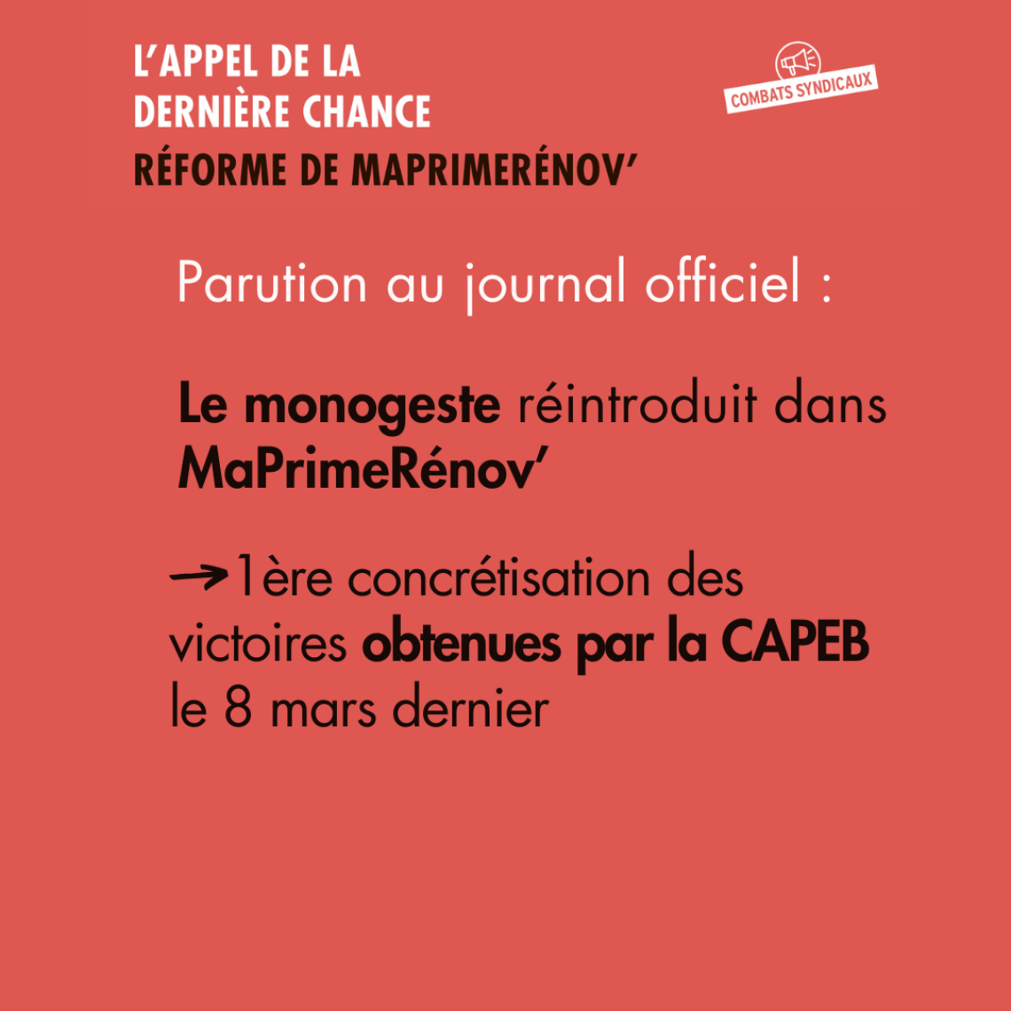 Cette publication au Journal Officiel est une première concrétisation des victoires obtenues par la CAPEB le 8 mars dernier.