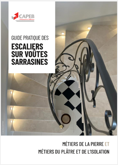 Le guide « Escalier sur voûte sarrasines » a été mis à jour. Résultat d’un important travail de la CAPEB nationale, ce guide au format numérique remplace la précédente version papier. Il définit les escaliers sur voûtes sarrasines, leur histoire, leur fonctionnement. Il s’intéresse aux matériaux et au matériel qui seront utilisés pour leur mise en œuvre. Il illustre ensuite les différents relevés à faire, puis c’est la conception de l’escalier qui est abordée : déterminer le nombre et les dimensions des marches de l’escalier, calculer son balancement… autant d’étapes détaillées avec des exemples pratiques et de nouvelles photos de chantier.Avant de passer à la mise en œuvre à proprement parler, le guide décrit la préparation spécifique du chantier. Toutes les phases de la mise en œuvre sont ensuite traitées : les saignées du mur d’échiffre, la mise en œuvre du patin, le briquetage, la voûte simple ou double, et la finition. Le guide évoque également les différentes variantes de l’escalier sur voûtes sarrasines.Enfin, le guide donne d’importants rappels sur l’assurabilité et sur la formation et se conclut sur un lexique et sur les différentes références normatives.