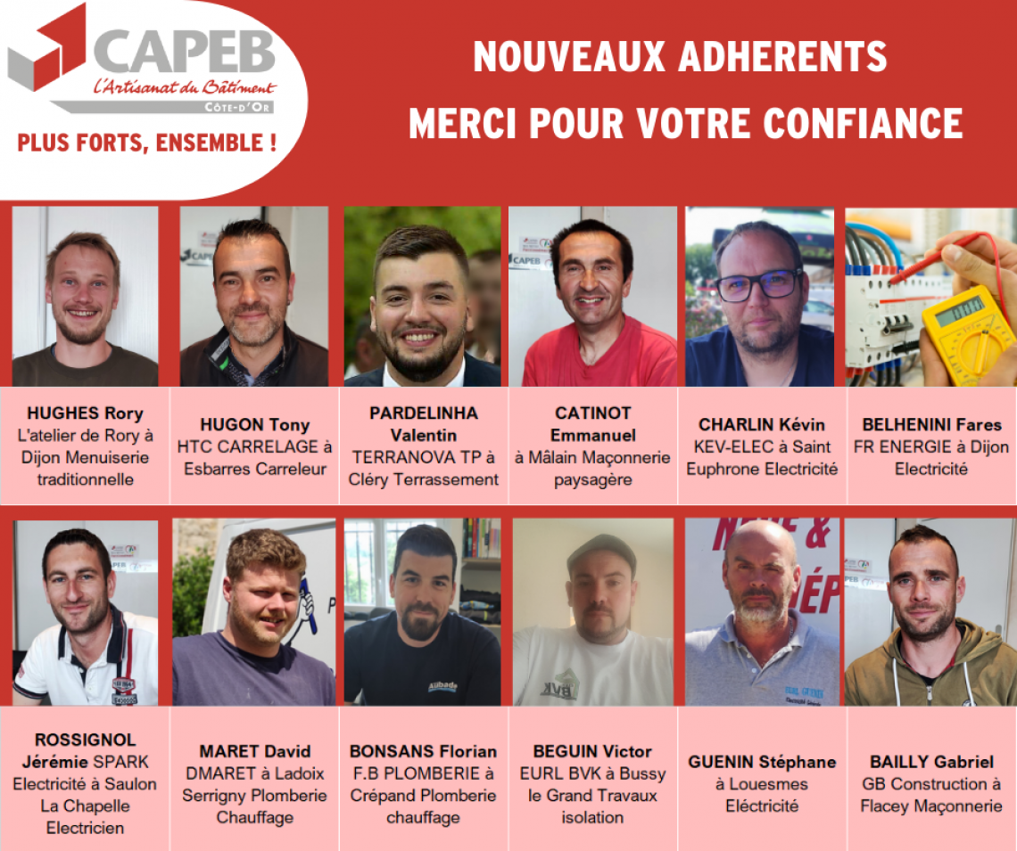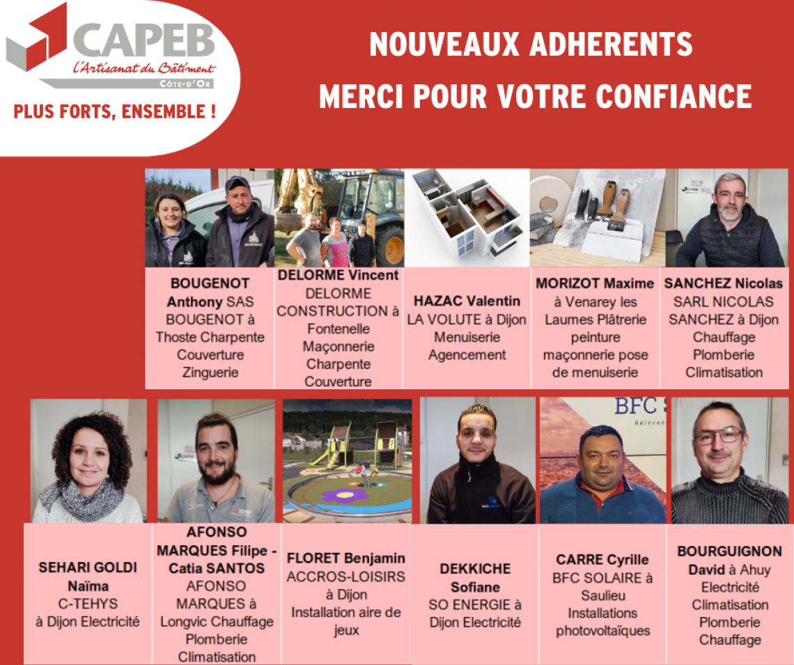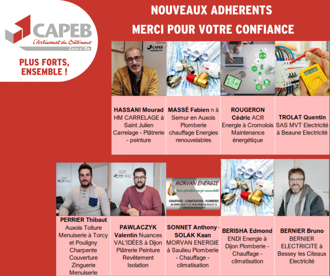 Nouveaux adhérents CAPEB depuis le début de l'année