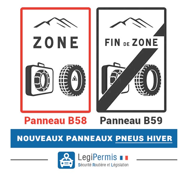 Ces panneaux, disposés le long des routes, signaleront l'entrée ou la sortie d'une zone d'équipements obligatoires.