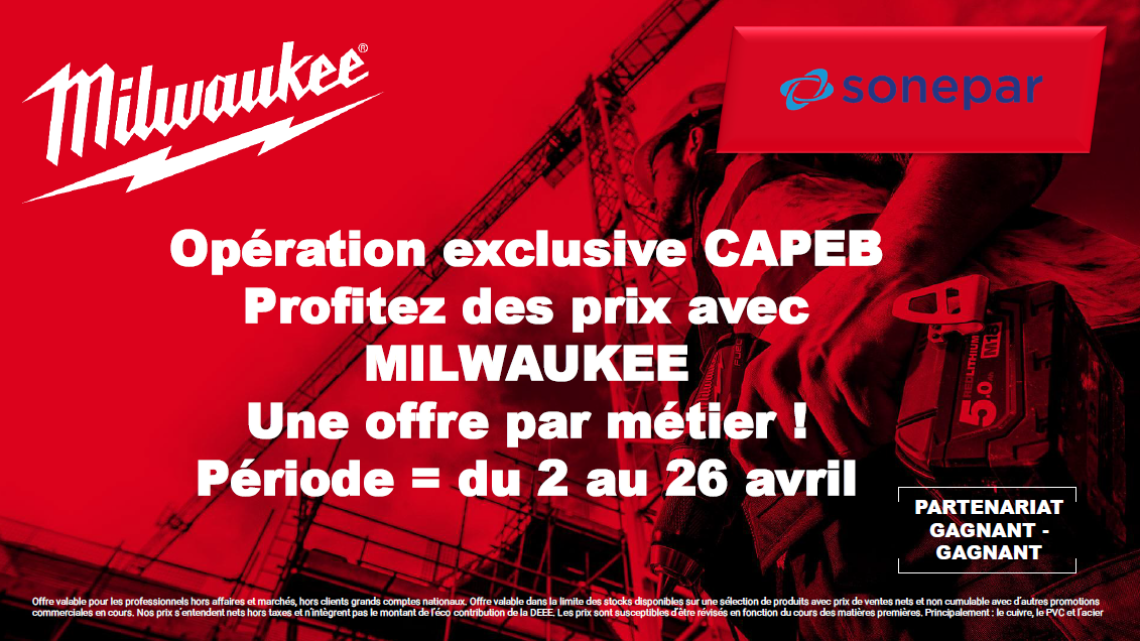 Offre exclusive Sonepar et MILWAUKEE pour la CAPEB