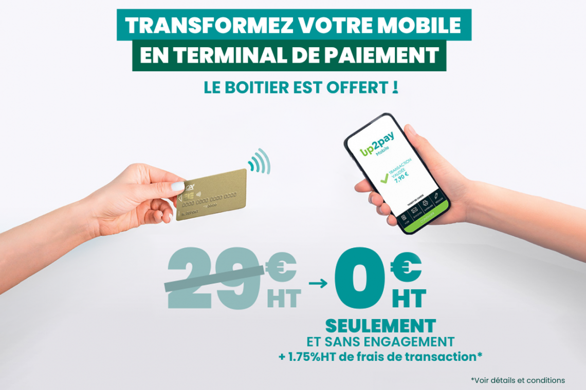 - Pour toute 1ère souscription + 1er boîtier UP2PAY mobile : Lecteur offert (valeur : 29 €)