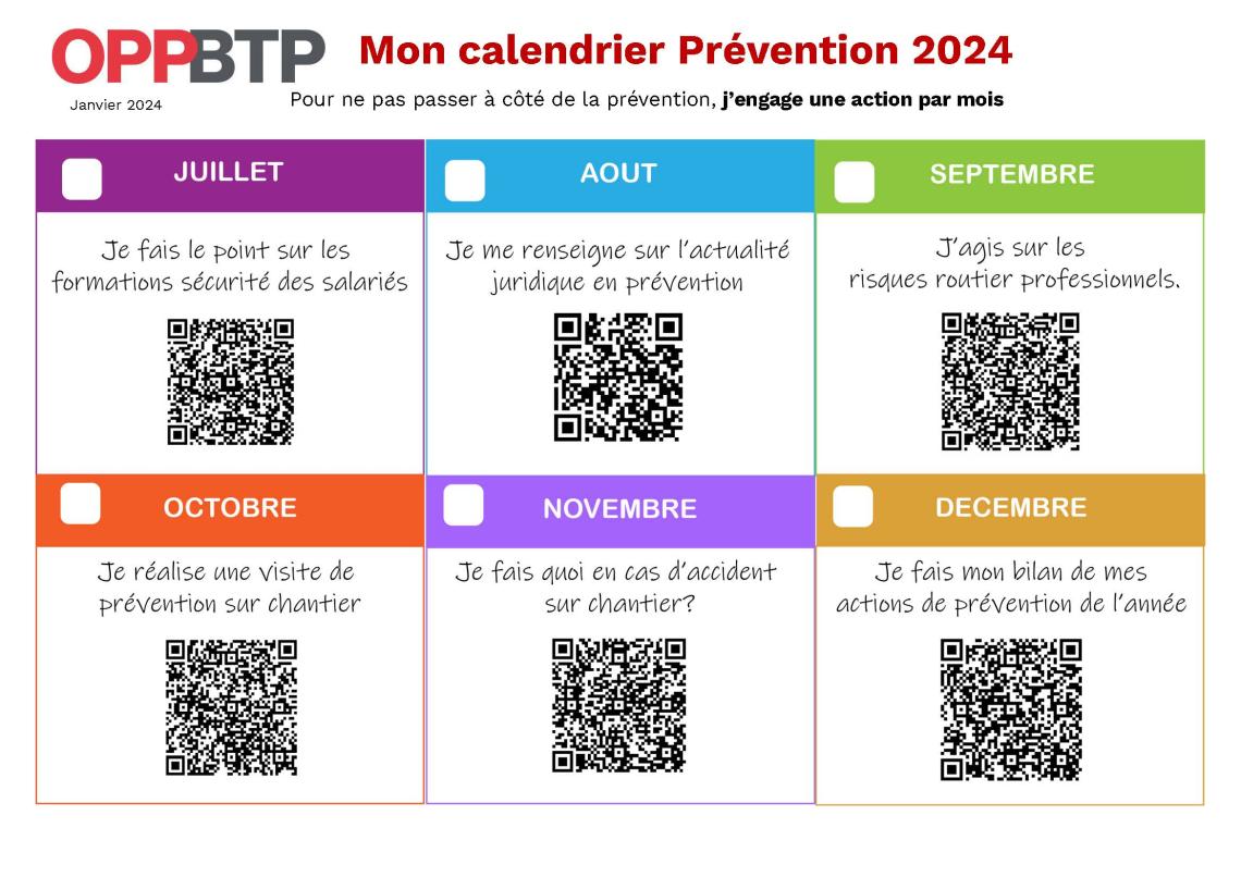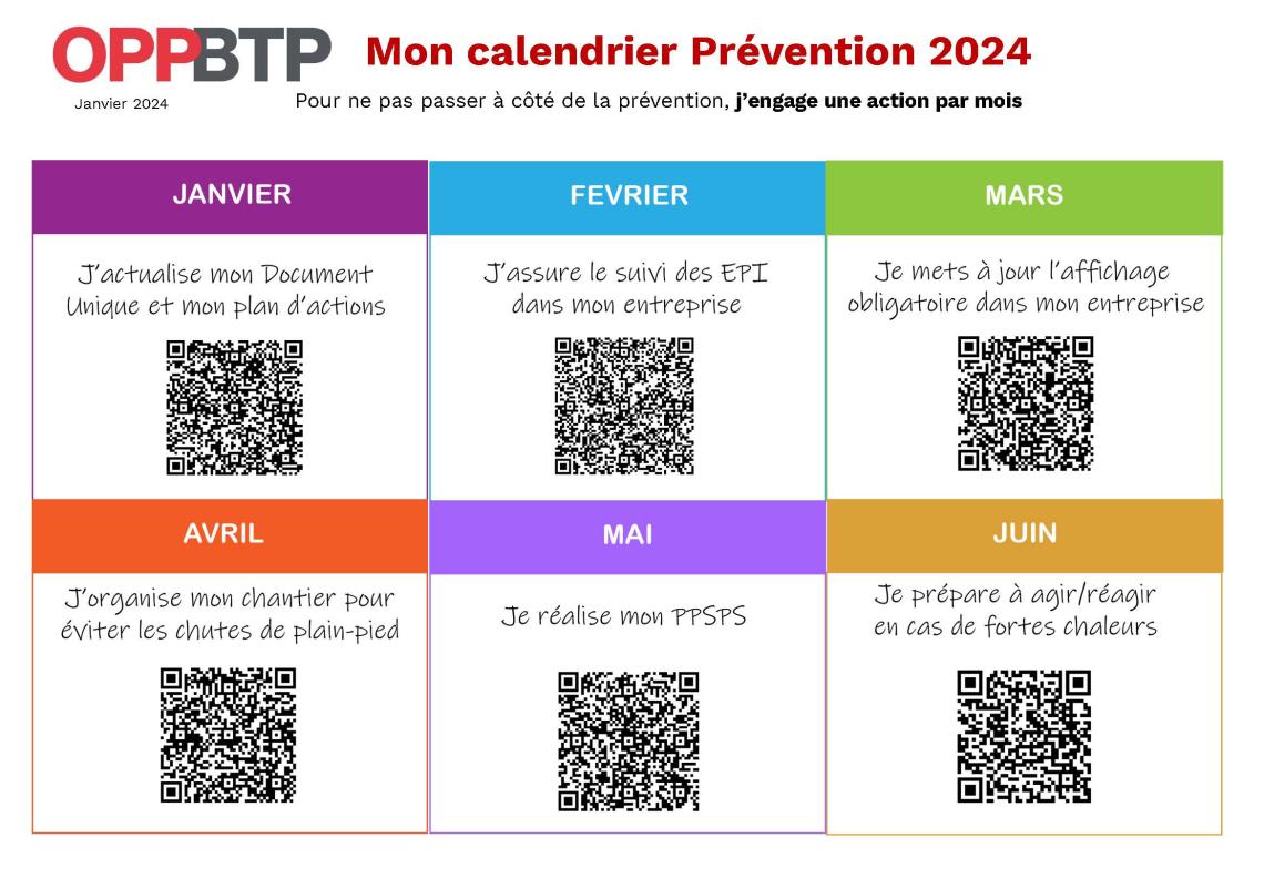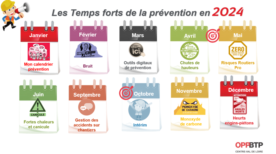 L'OPPBTP vous accompagne sur 2024 avec son nouveau calendrier Prévention.