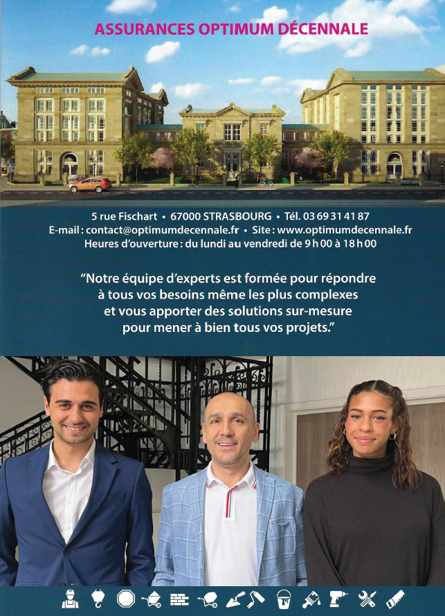 Optimum Décennale, dont le siège est au 5 Rue Fischart à Strasbourg est un assureur spécialisé en Assurance Décennale pour les métiers du bâtiment, gros œuvre, second œuvre et prestations intellectuelles.