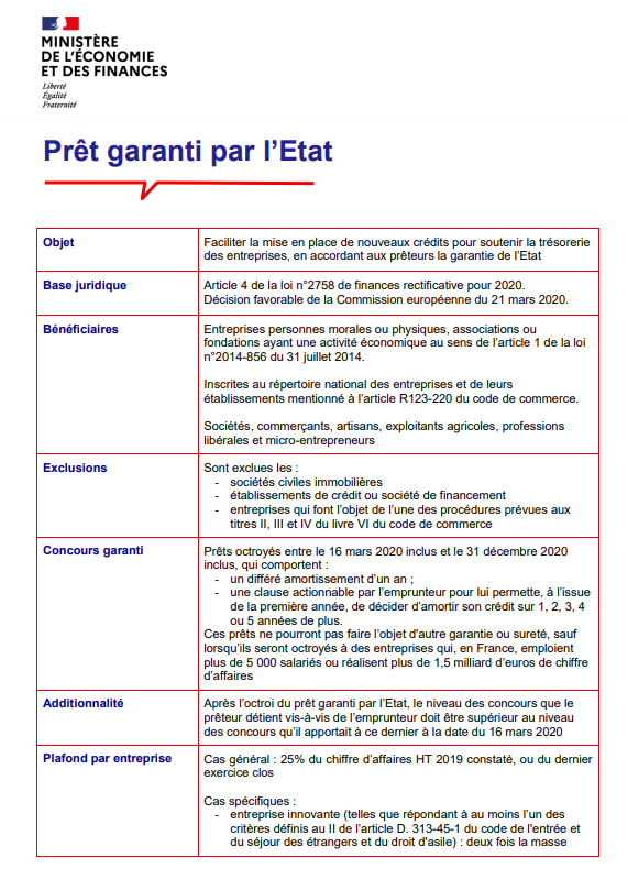 Ouverture des prêts de trésorerie garantis par l’Etat