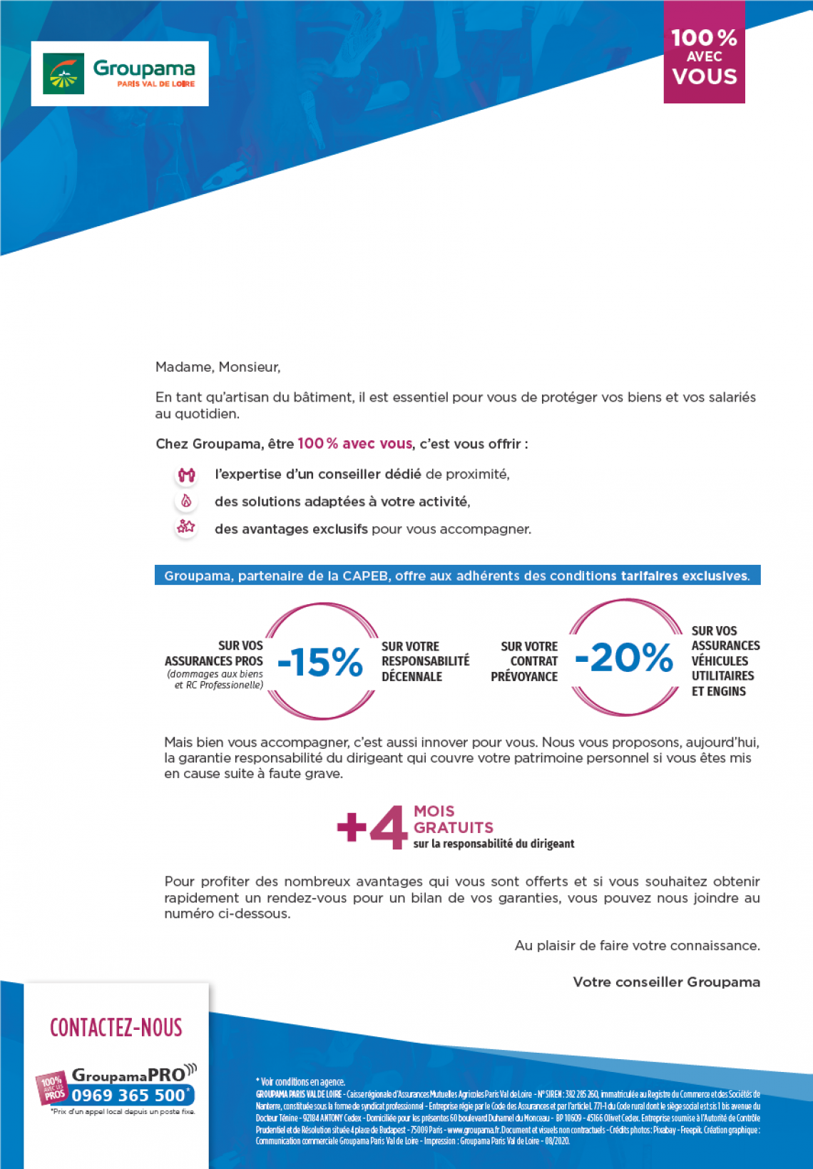 2024-11-22 16:30:00 PARTENARIAT GROUPAMA CONDITIONS TARIFAIRES EXCLUSIVES POUR NOS ADHERENTS Pour télécharger la plaquette en format pdf, cliquez ici