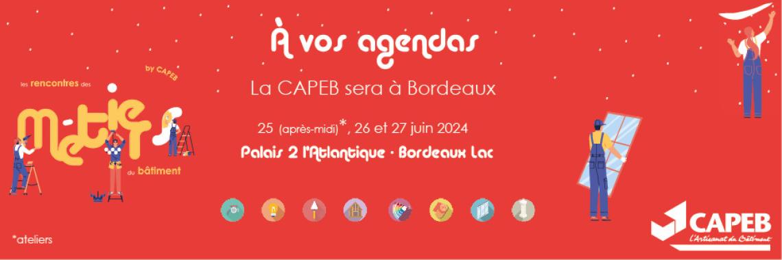 Les Rencontres des métiers du bâtiment se tiendront à Bordeaux Lac du mardi 25 après-midi au jeudi 27 juin 2024 au Palais 2 l’Atlantique.